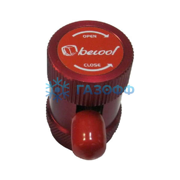 Быстросъемная муфта высокого давления (красная) для подсоединения к порту заправки и диагностики автомобильных кондиционеров, работающих на хладагенте R134a, или малых рефрижераторных установок на R404a. Предназначена для подсоединения к порту высокого давления автомобильного кондиционера без открытия доступа к системе циркуляции хладагента. Поворота вентиля по часовой стрелке приводит в действие механизм опускания штока-депрессора, который нажимает на золотник и, тем самым, открывает доступ к системе циркуляции хладагента. Вентиль позволяет избежать механических поломок, связанных с физическим сопротивлением внутреннему давлению системы. Без вентиля, пытаясь подсоединить порт, возможно сломать трубку, на которой расположен порт. Муфта имеет разъем для подсоединения шлангов с внешняя резьба 1/4" SAE расположенных под углом 90°, для более удобного использования.