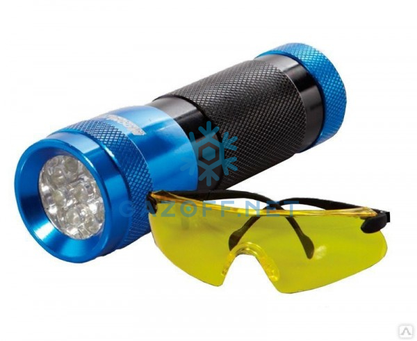 Для обнаружения утечек предварительно в систему а/м кондиционера вводится UV краситель. Это делается для того, чтобы идентифицировать место утечки в подкапотном пространстве – из двигателя а/м или из компрессора автомобильного кондиционера. Далее следует осветить все возможные места скопления/выделения UV красителя в подкапотном пространстве светом UV - фонарика. Если произошла утечка хладагента, то это место сразу будет видно в специальных желтых очках в ультрафиолетовом свете, останится только устранить ее.