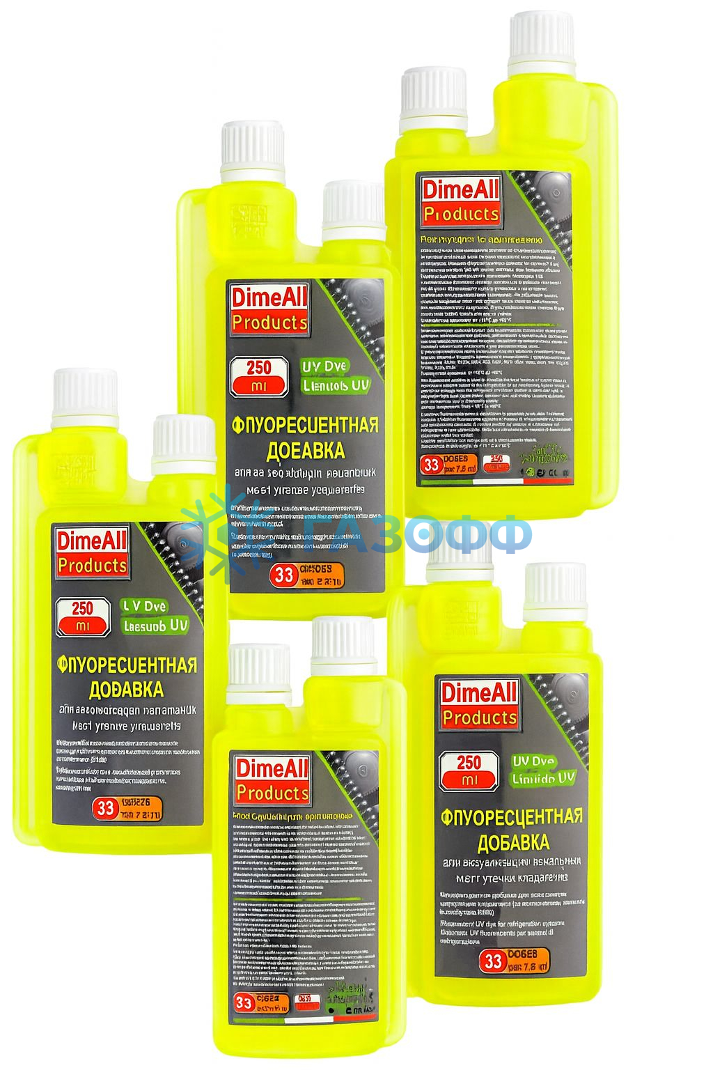 Профессиональная ультрафиолетовая добавка DimeAll UV для холодильных систем и систем кондиционирования воздуха, позволяет произвести поиск утечек из систем циркуляции хладагента (общепринятое название — фреона), в ультрафиолетовом свете. В ультрафиолетовом свете, локальные места утечки хладагента, с заранее введенным индикатором DimeAll UV, становятся, очень хорошо заметны.