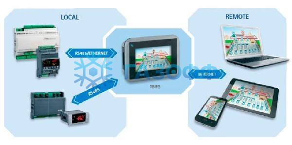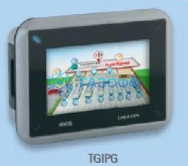 TGIPG - программируемые сенсорные дисплеи семейства TFT для работы с программируемыми контроллерами Dixell. Дисплеи обладают мощной аппаратной платформой, поддерживают большой набор шрифтов, обеспечивают возможность подключения через Ethernet/Internet, что позволяет с легкостью применять их в HVAC/R приложениях. Наличие простого и понятного графического редактора позволяет легко программировать эти дисплеи. Особенности цветных сенсорных TFT дисплеев TGIPG: мощная платформа на базе микропроцессора ARM9 (400МГц); объем оперативной памяти 64Мбайт (DDR2); запись данных на флеш-память - твердотельный накопитель 128Мбайт и на внешнюю CD карту. Подключение к контроллерам Dixell с помощью RS485 или Ethernet. Удаленное подключение (через Интернет). USB-порт для подключения мышки, принтера и обновления приложений. TFT-ЖК display - 16.7 млн. цветов (true color), светодиодная подсветка. Передняя панель с классом защиты IP65. Возможность работы с векторной графикой. Возможность создавать различные экраны по запросу заказчика. Полное управление авариями. Встроенная запись данных. Анимированная графика. Поддержка нескольких языков. Режим симуляции для отладки на ПК. Энергопотребление - максимально 1А. Среда разработки Дисплеи TGIPG программируются через простой в освоении графический редактор, позволяющий быстро создавать приложения для дисплея. Большой набор символов, графических элементов и шаблонов наряду с возможностью обрабатывать картинки в высоком разрешении позволяет быстро создавать красивый, функциональный и интуитивно понятный интерфейс. Наряду с поддержкой различных языков существует возможность перевода интерфейса через Интернет браузер.